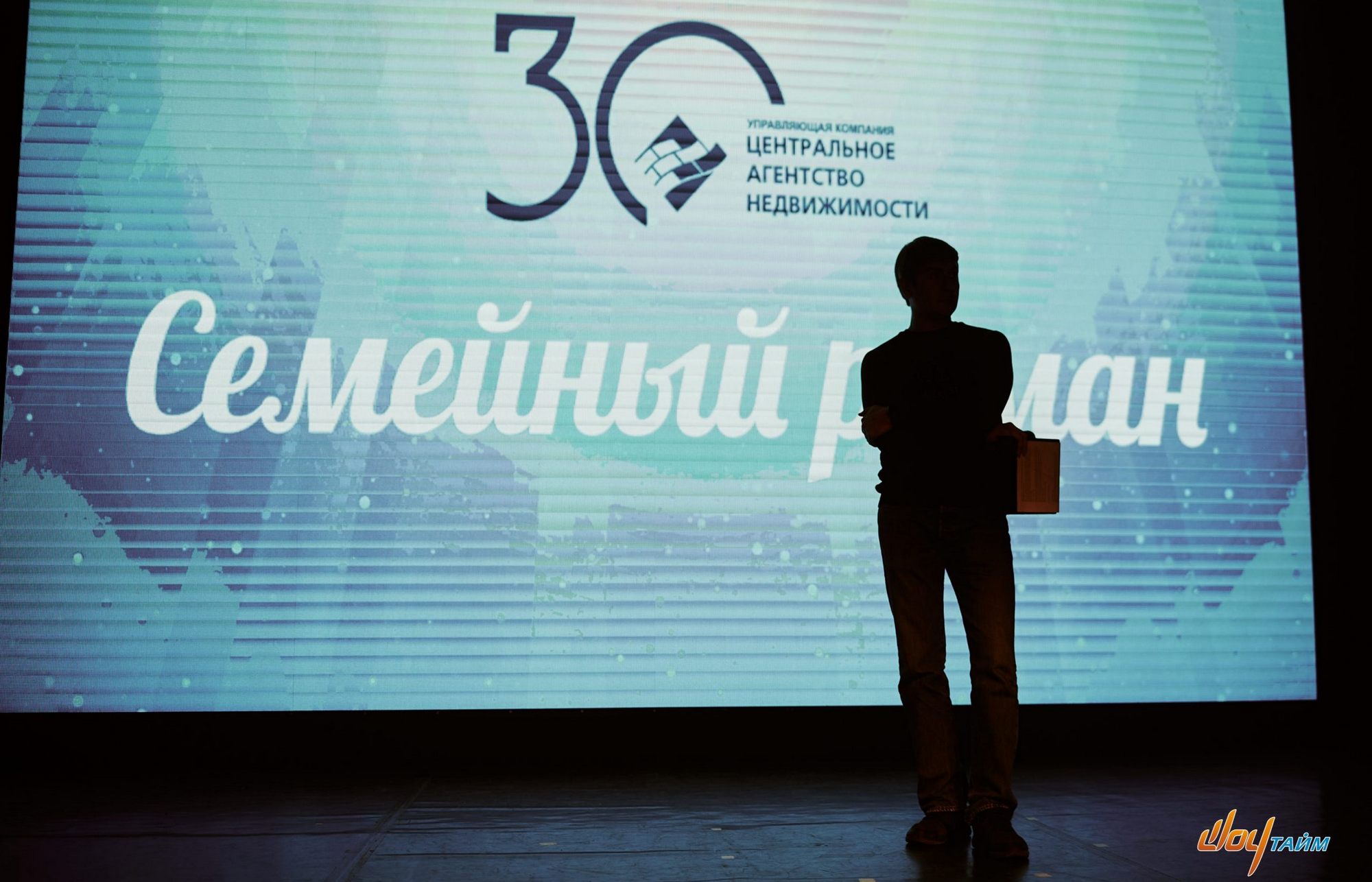 Изначально наша задача была такова: предложить новый формат празднования корпоративного юбилея. Надо отметить, что с подобными задачами мы сталкиваемся постоянно! В этот раз нами был придуман театральный перфоманс «Семейный роман». В этом перфомансе корпоративные ценности заказчика предстают перед зрителем в виде простой житейской истории одной рязанской семьи (их сыграли замечательные рязанские актёры), жизнь и история трёх поколений этой семьи тесно переплетена с историей развития Центрального агентства недвижимости, для которого, кстати сказать, мы делали 25-летие…