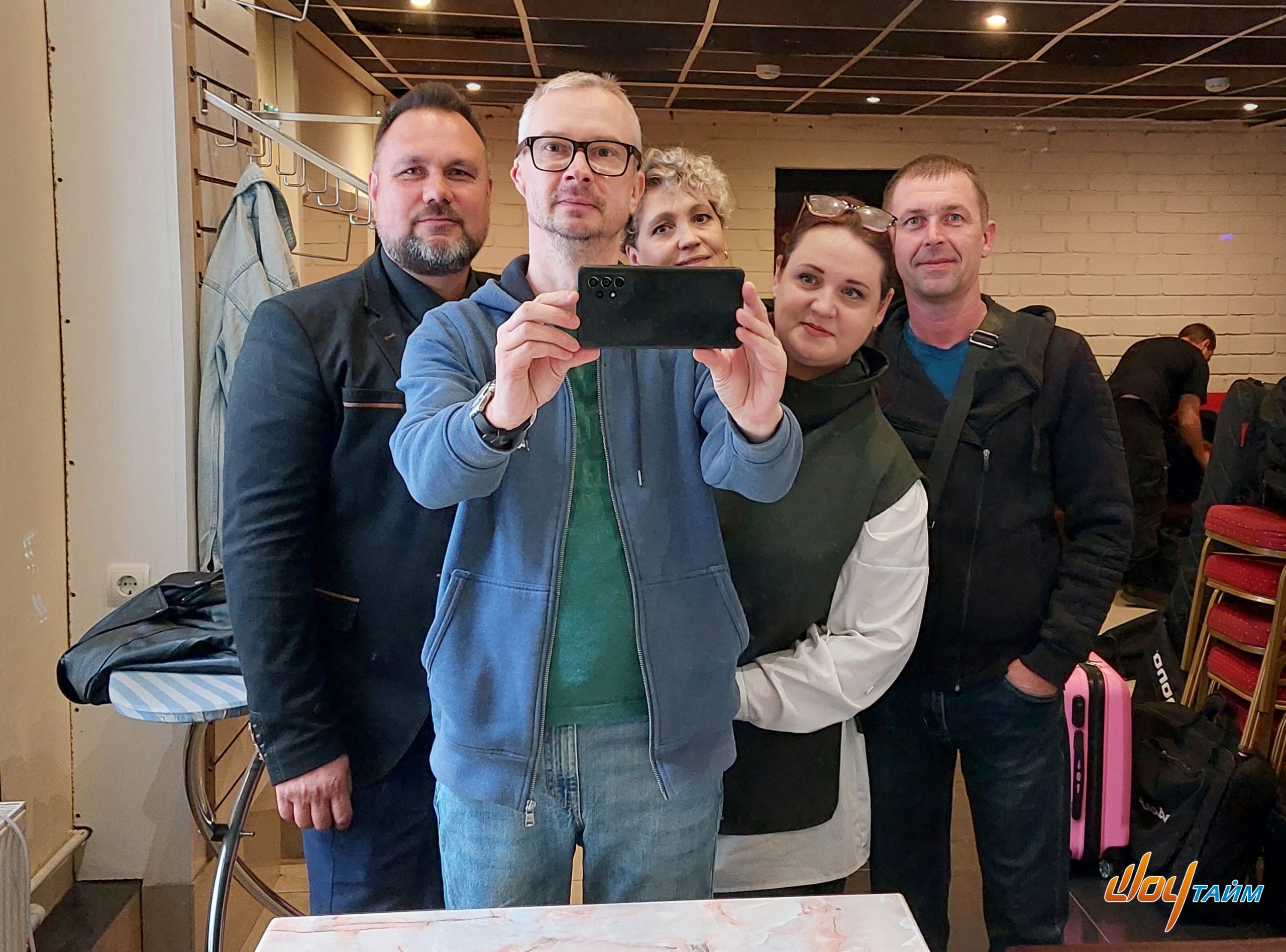 В этом частном юбилее приняли участие тридцать пять артистов из Москвы и Рязани, двое из них — заслуженные артисты РФ. Не самая большая команда, что нам приходилось встречать, размещать и выпускать на сцену (самая большая пока — 120 артистов), но тоже вполне себе задачка… Четыре федеральных бытовых райдера, транспортная логистика (включая вокзалы и отель), 8 ширм, 3 бойлера, 3 зеркала в рост, 5 напольных вешал и т.д. и т.п.